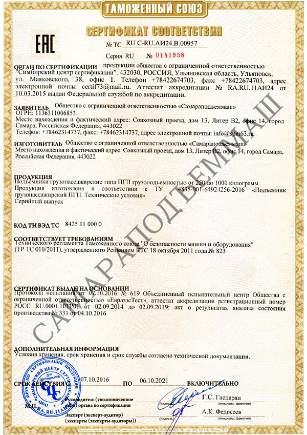 Для изготовления такого оборудования необходим сертификат ТР ТС (Технический регламент Таможенного союза ТР ТС 010/2011 «О безопасности машин и оборудования» от 15 февраля 2013 г.).