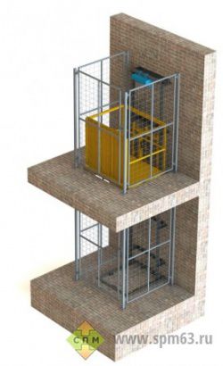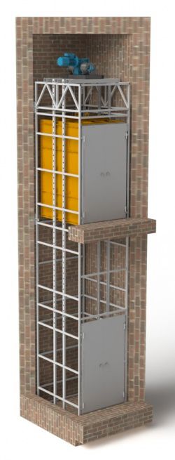 Малый грузовой лифт ПмГ-МШ в металлокаркасную шахту